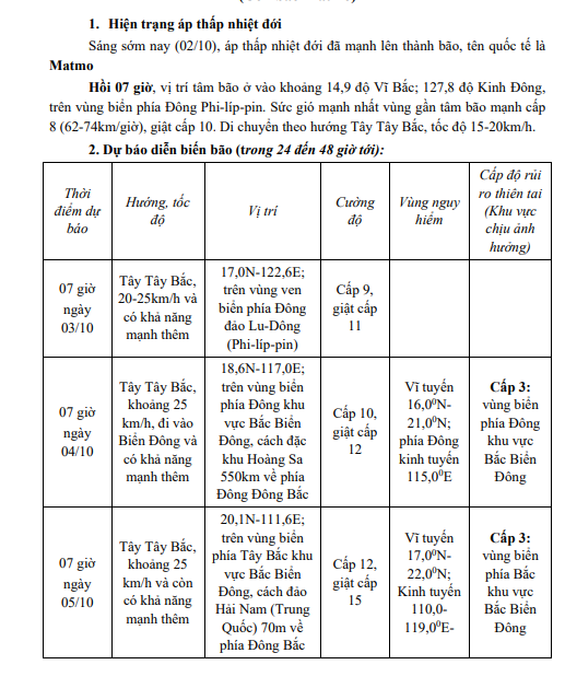 TIN BÃO GẦN BIỂN ĐÔNG - Cơn bão Matmo (ngày 03.10.2025)