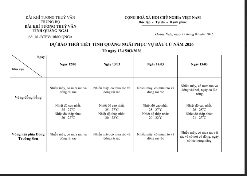 BẢN TIN DỰ BÁO PHỤC VỤ BẨU CỬ NĂM 2026