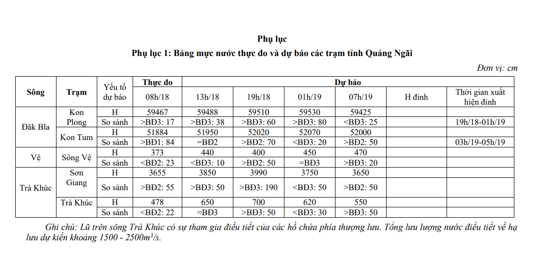 TIN LŨ KHẨN CẤP TRÊN SÔNG ĐĂK BLA Ở TỈNH QUẢNG NGÃI Ghi chú